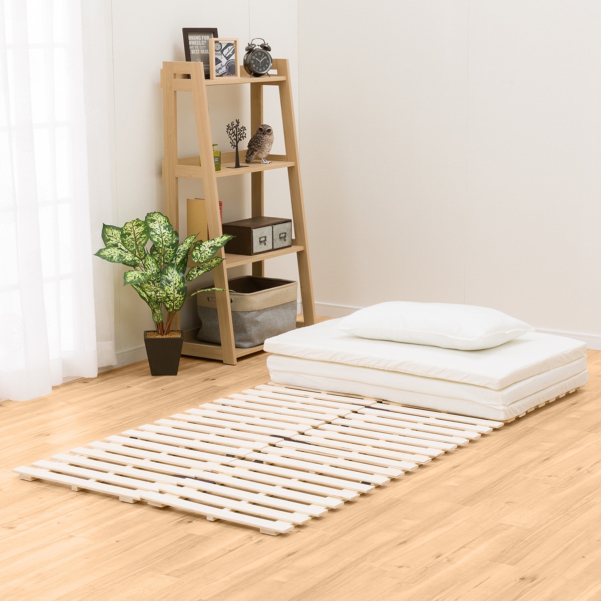 コンパクトに折りためる、通気性のよいスノコベッドです。ベッド用のマットレスを乗せても使用できます。
