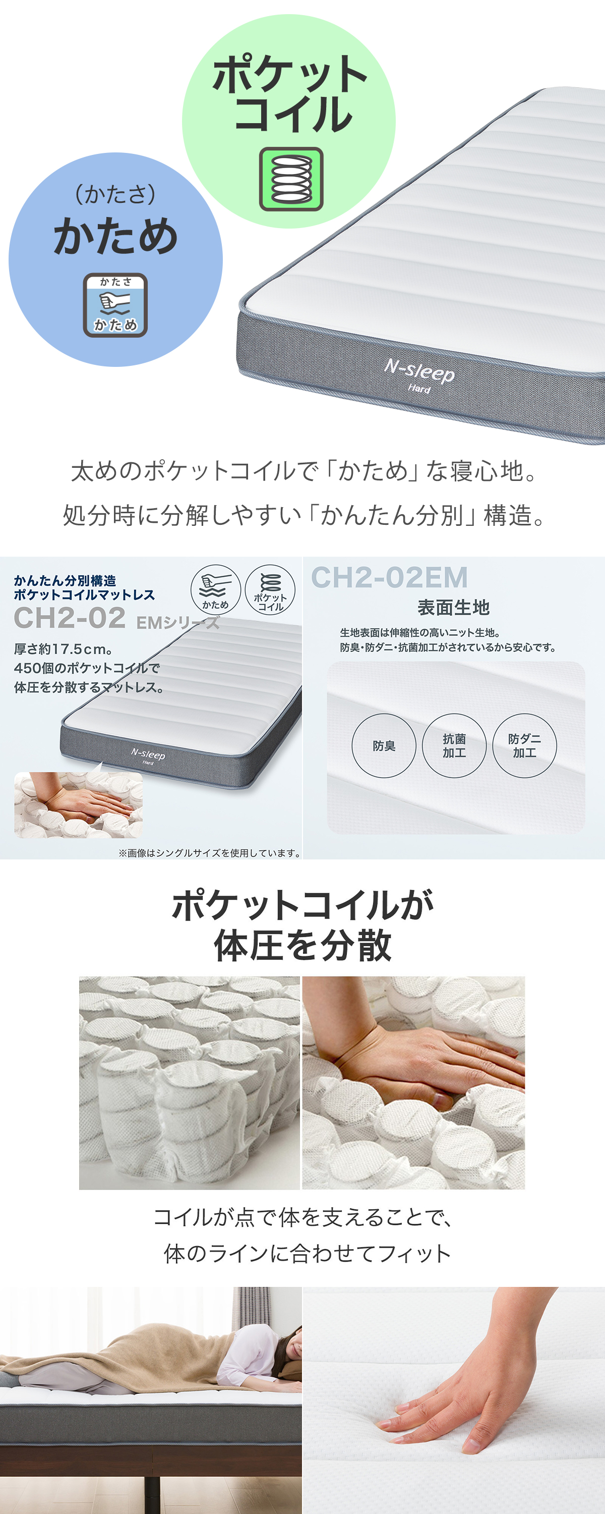 Nスリープシリーズのハードタイプで「かため」な寝心地。