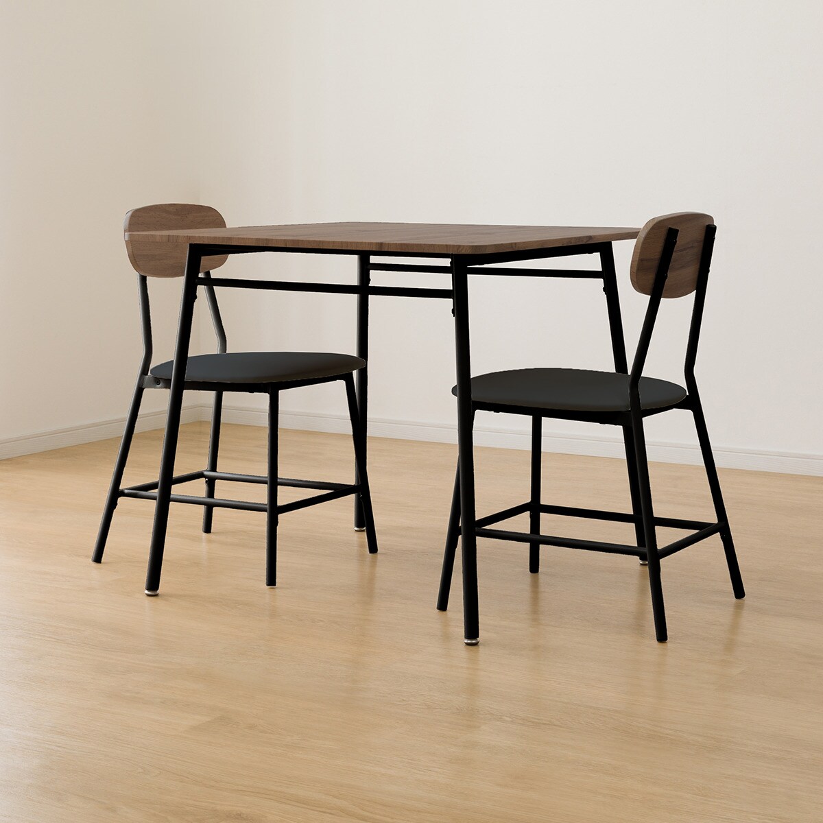 木目調+金属脚でモダンなダイニングテーブルとチェアのセットです。「組立品」「セット販売のみ」でお求めやすくなっています。