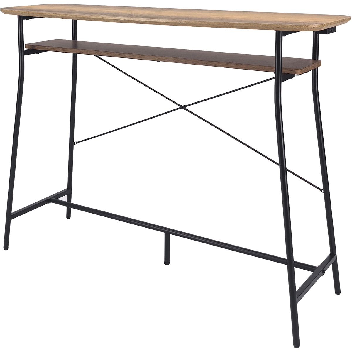 シンプルながらも脚のデザインが特徴的なカウンターテーブルです。こちらは奥行が40cmタイプです。木製の天板と棚板が黒い金属フレームの組み合わせは、モダンでスタイリッシュな印象を与えます。