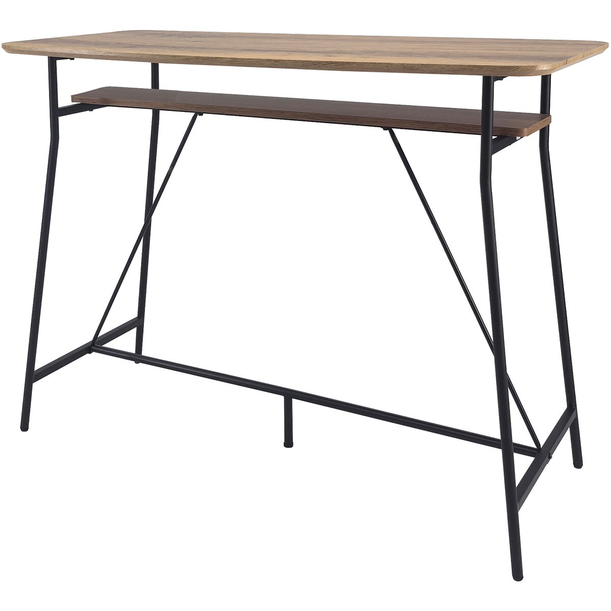 シンプルながらも脚のデザインが特徴的なカウンターテーブルです。こちらは奥行が60cmタイプです。木製の天板と棚板が黒い金属フレームの組み合わせは、モダンでスタイリッシュな印象を与えます。