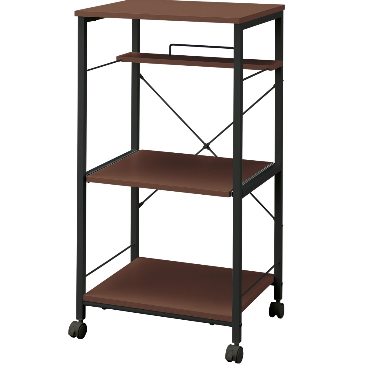 スライドトレー上部の奥に小物などを収納できる棚板付き。