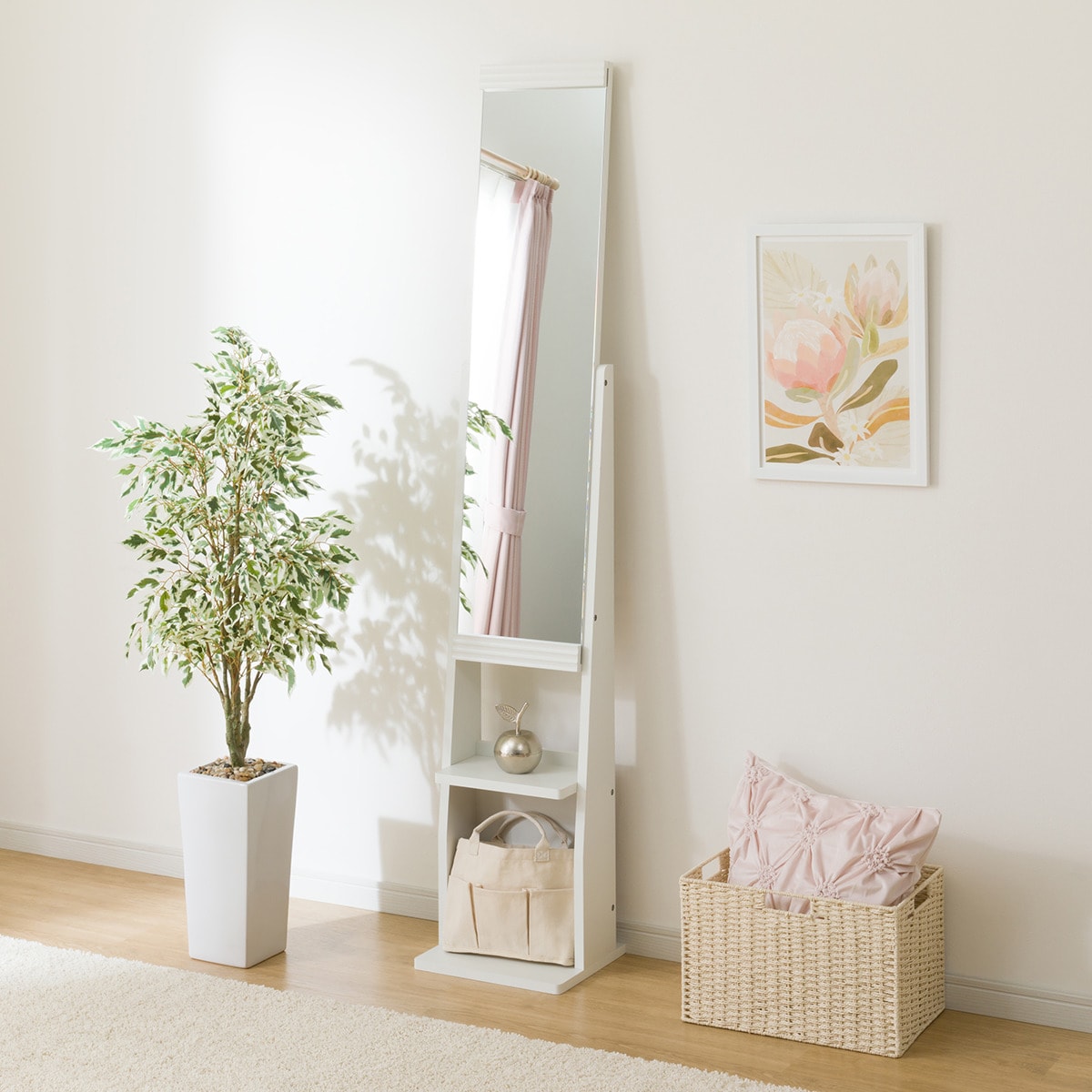 ミラーは縦長のデザインで全身を映すのに適しています。