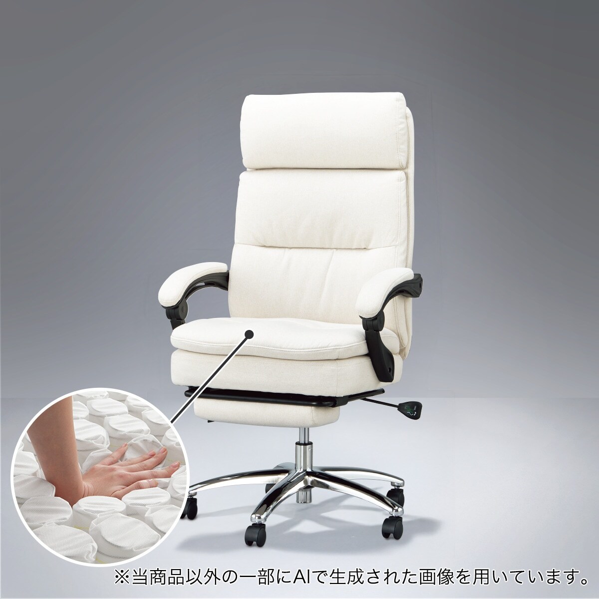 フットレスト付きで、リクライニング機能・角度調節ヘッドレストと合わせて使用すれば読書やテレビを見る時も、好みの姿勢に調節できます。