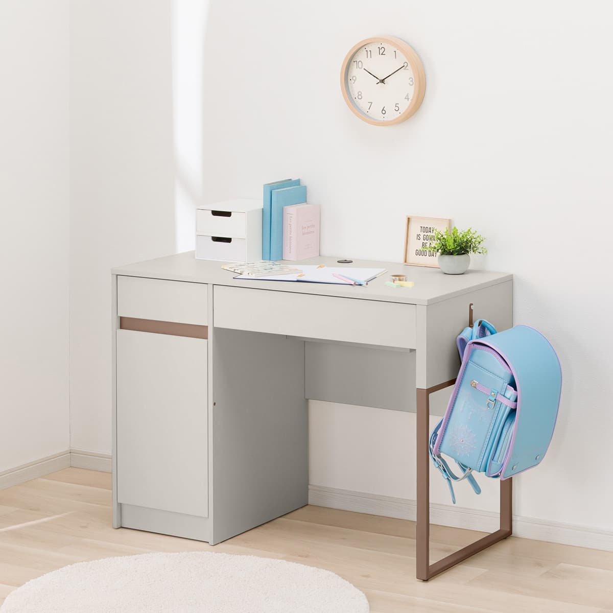 シンプルで使いやすいデスクは、お部屋の雰囲気に合わせて自由にカスタマイズが可能です。左右どちらにも取り付け可能な袖付きで、レイアウトや用途に合わせて柔軟に対応できます。