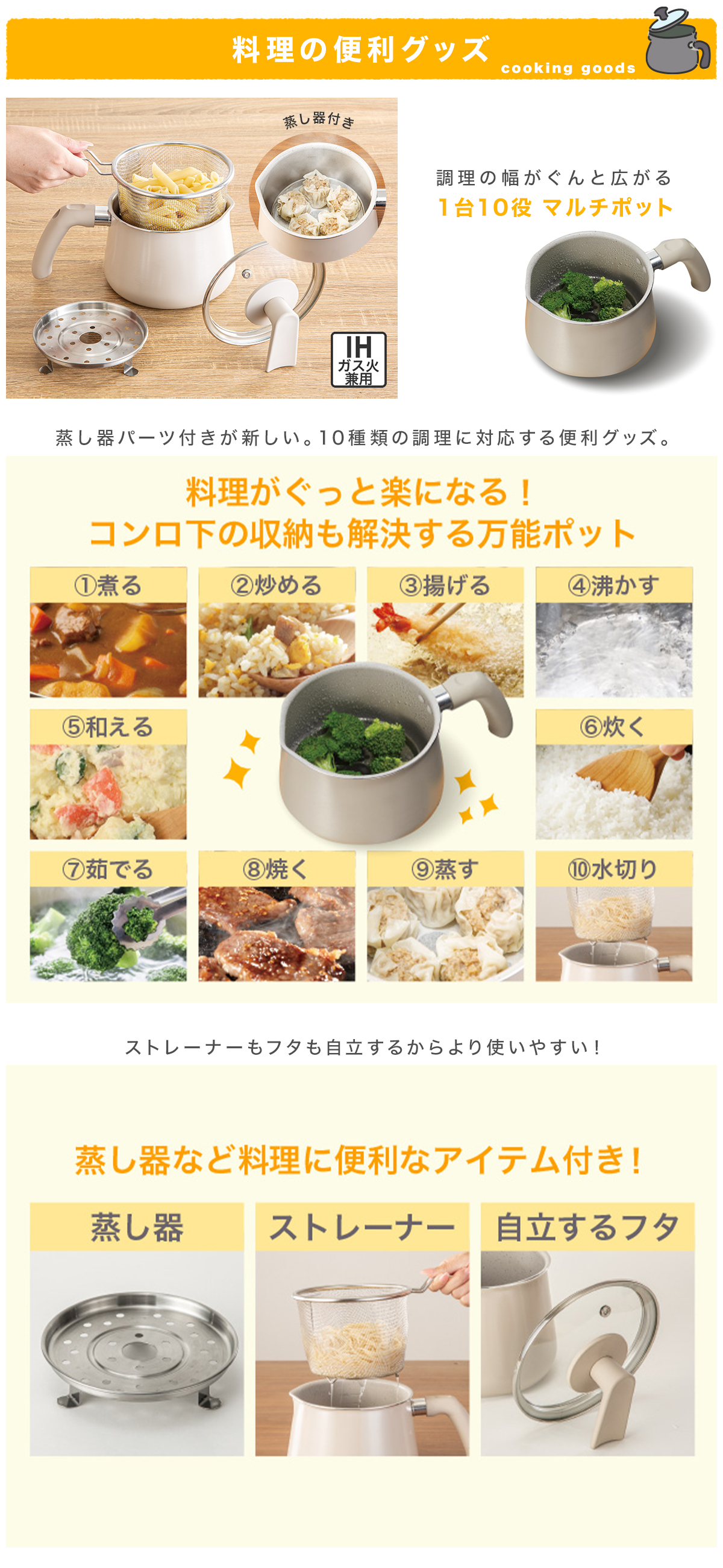 品質表示[ストレーナー、蒸し台]