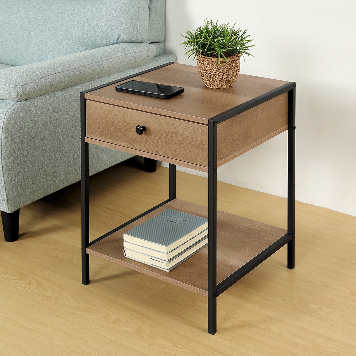 引出しには小物やリモコンなどを収納でき、天板や下部の棚にはお気に入りのインテリアや日用品を置くのに便利です。