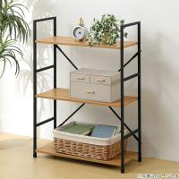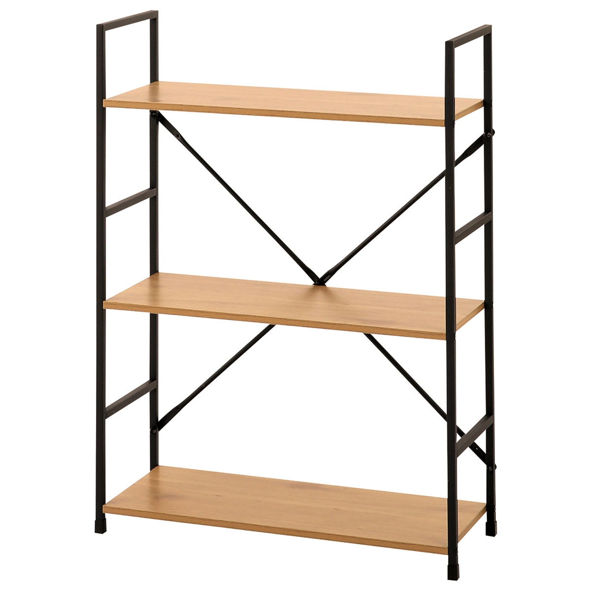 スチールオープンシェルフ (木棚3段 幅59cm ライトブラウン/ブラック) ニトリ