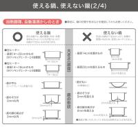 ※火力をワット数で表示していますが、鍋の種類・形状・材質・材料などによって火力が弱くなったり加熱ができないものがあり、実際の消費電力とは異なることがあります。
