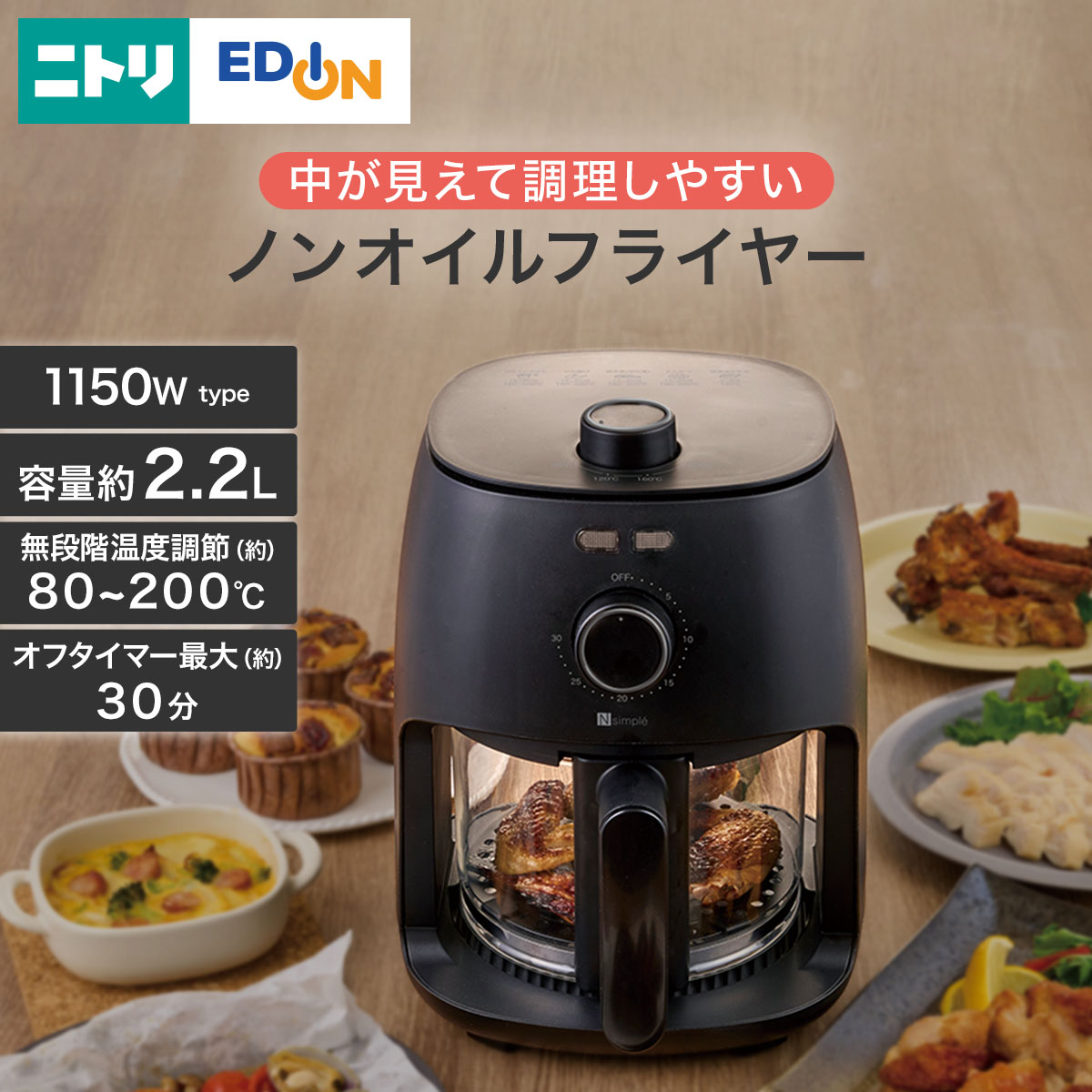 熱風を循環させ、オイルフリーで調理。
