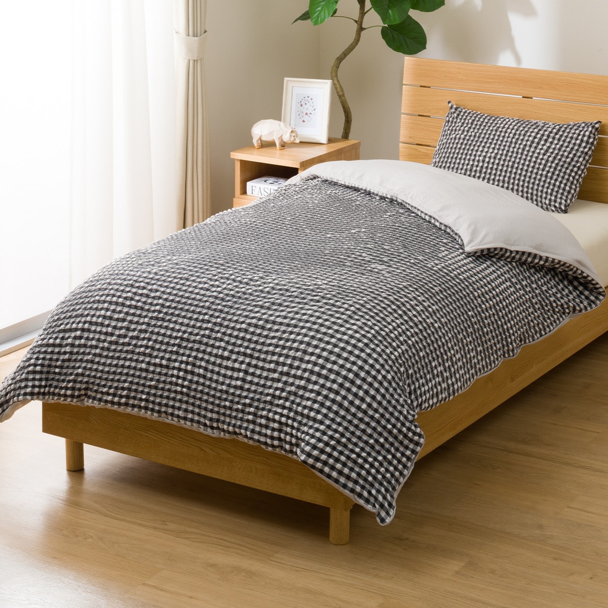 掛け布団カバー シングル(S2604 Rチェック BK S) ニトリ