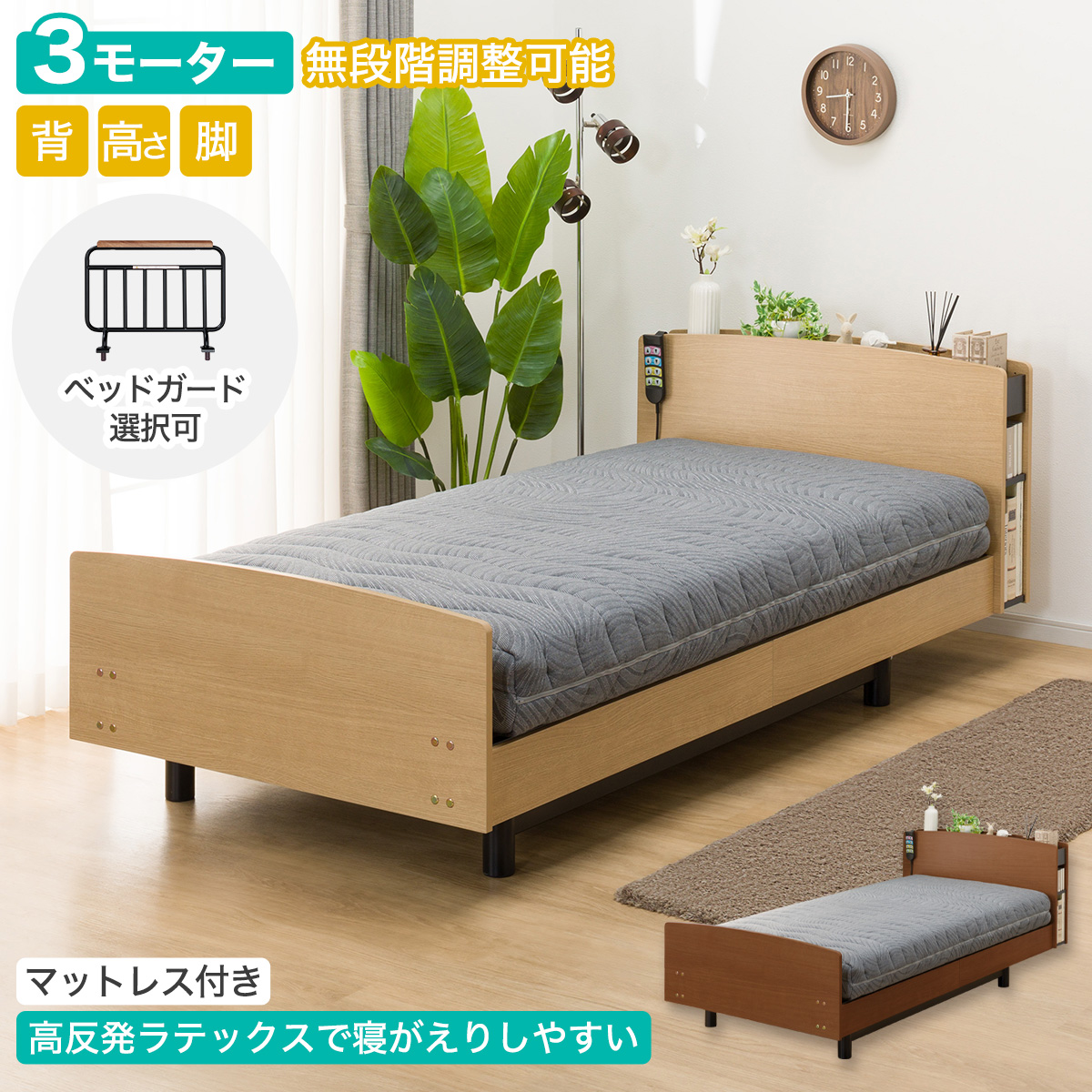 ベッドの高さ・背部・足元をそれぞれ独立して動かして無段階調整できる3モーター仕様です。