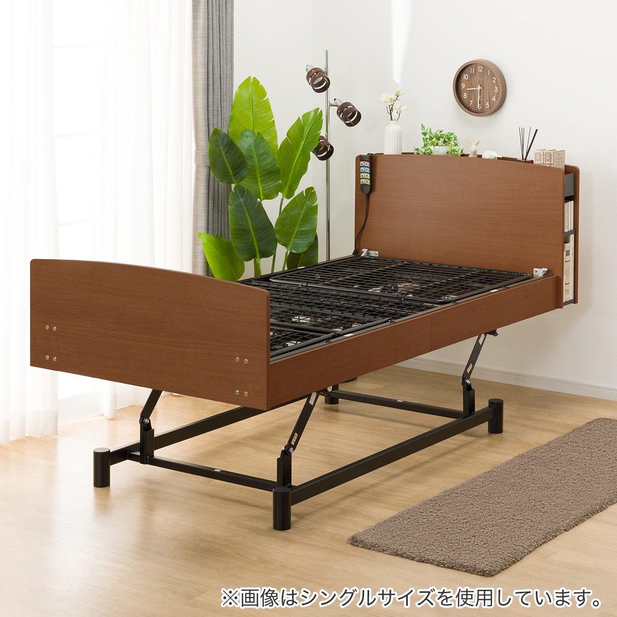木目調の落ち着いた雰囲気の電動ベッドです。
