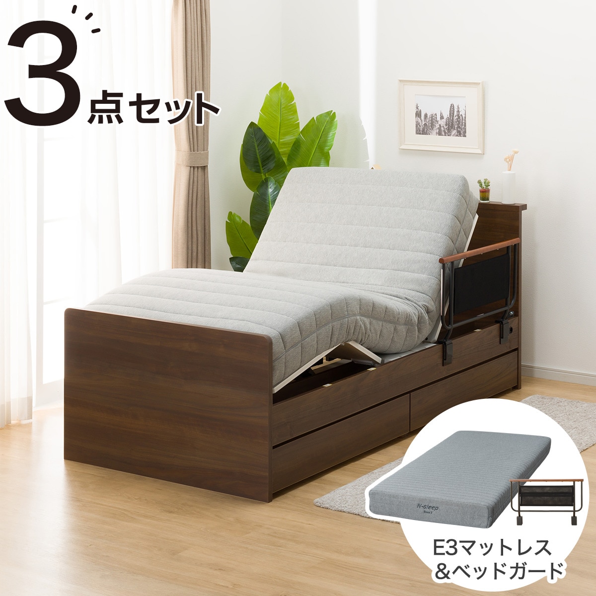 ※こちらの商品は介護ベッド【非課税】商品となるため、他の税込商品と同時にご注文はできません。セット内容:ベッドフレーム(シングル)、マットレス(E3-05)、サイドガード1本