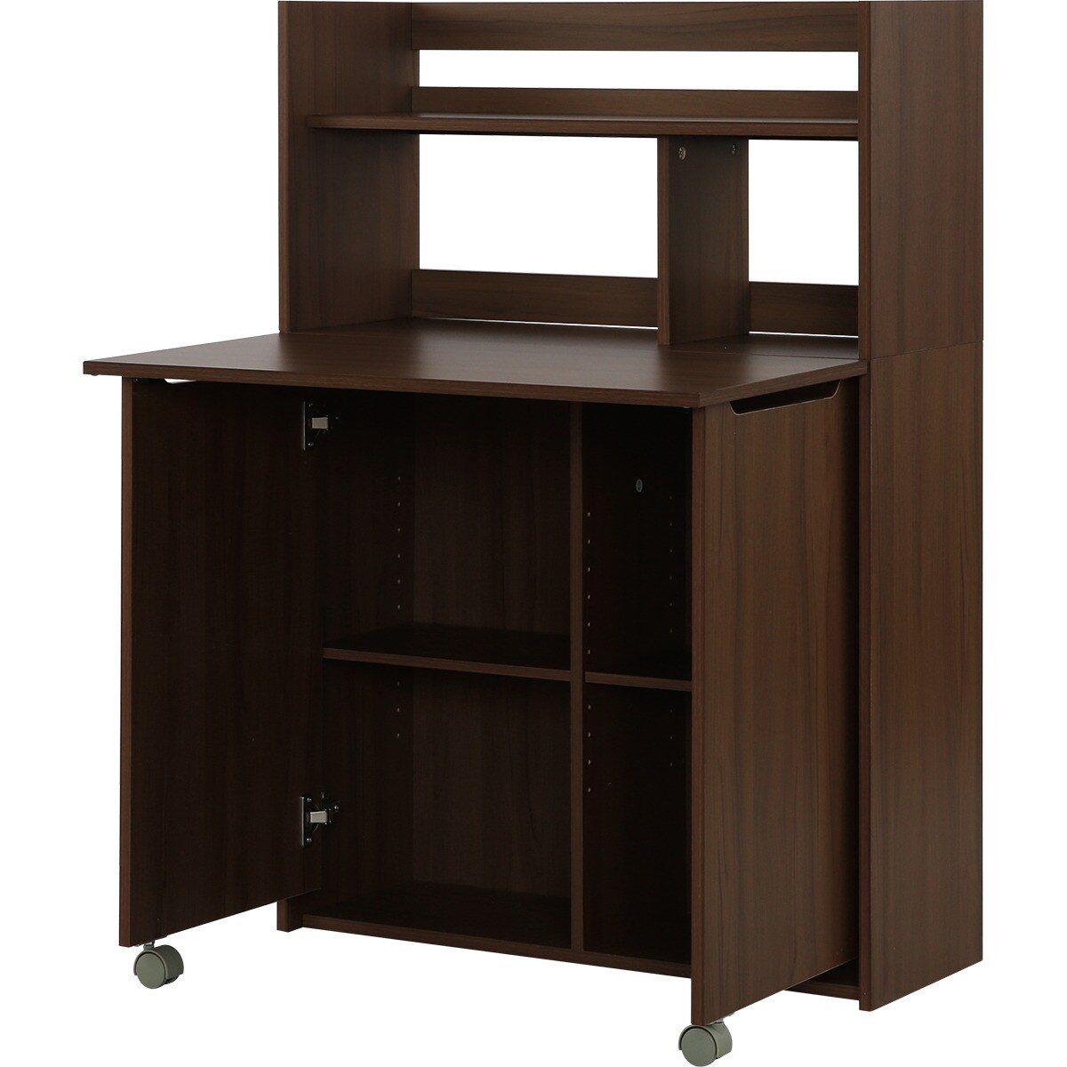 普段は収納家具として、天板を開けば簡易デスクとして使える机とラックが一体化した2WAYデザイン。限られたスペースの有効活用が可能です。
