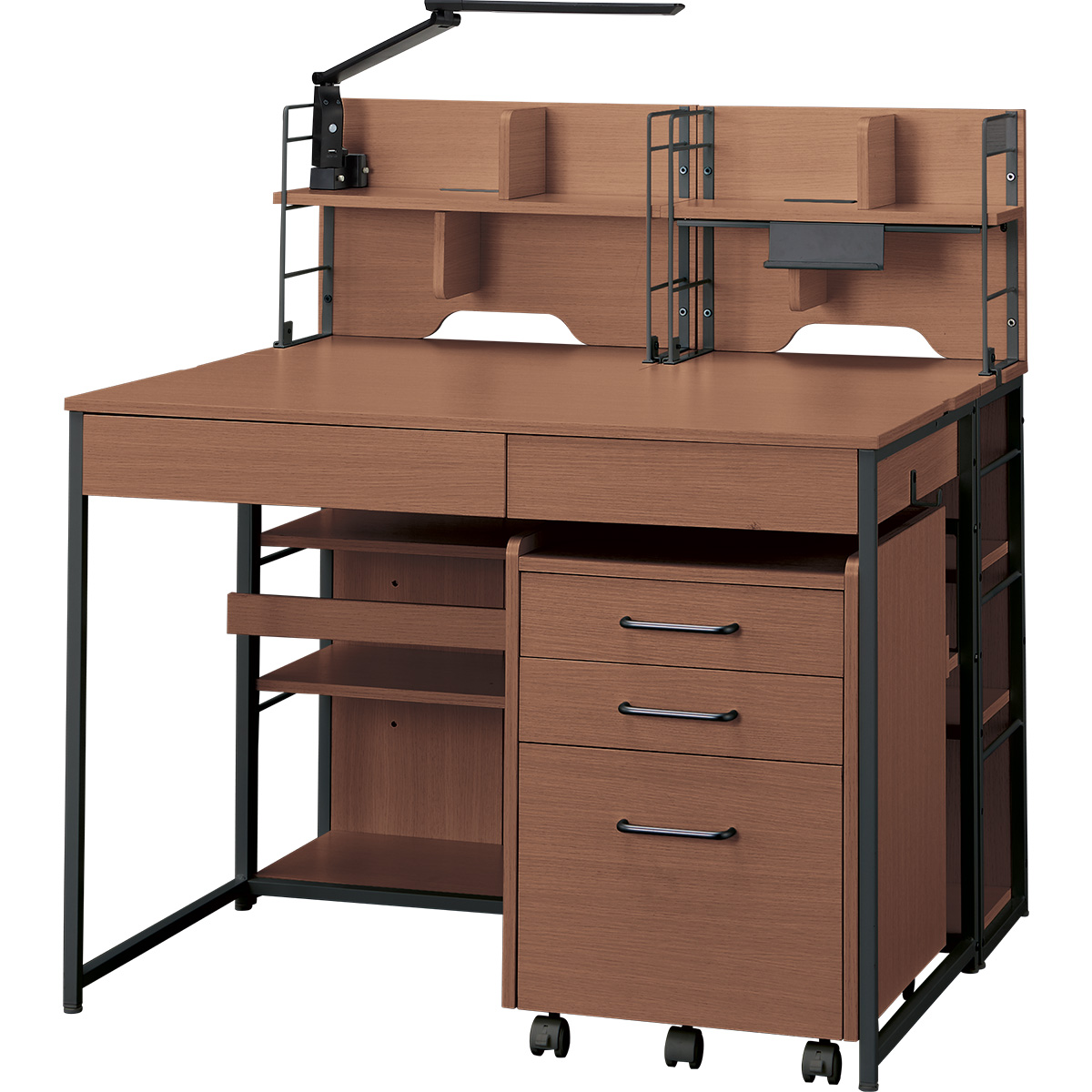 広々とした天板で勉強や作業がしやすく、収納力のある引出しや棚で教材や文房具もすっきり整理できます。