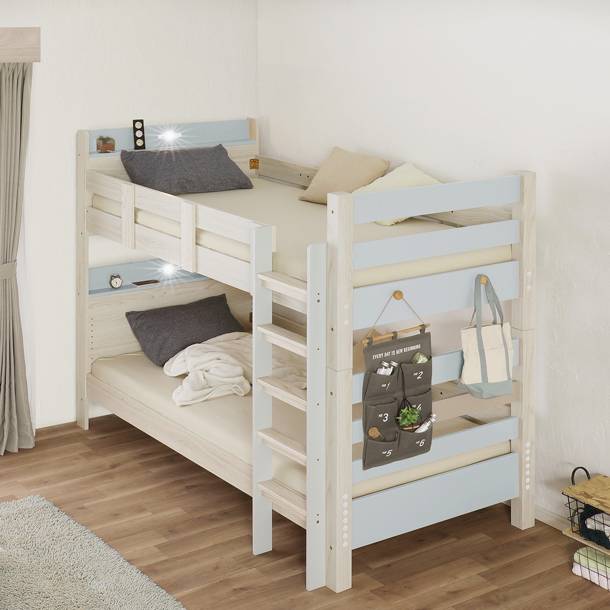 ●優しい色合いのツートンカラー2段ベッド