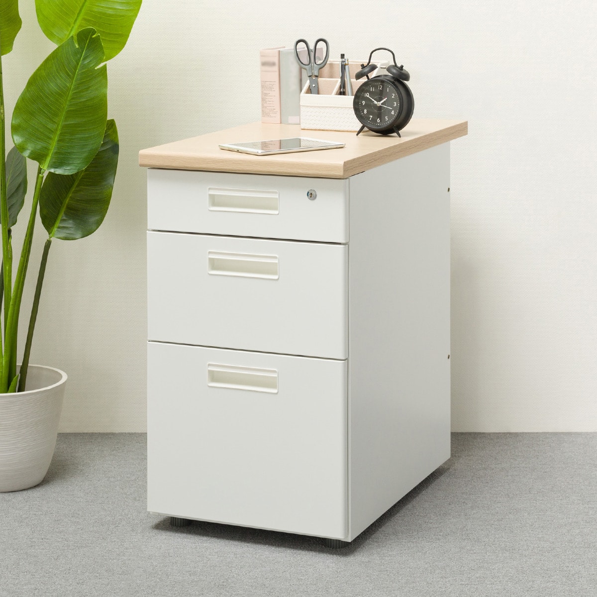 下段引出しは、A4サイズファイルも収納可能で奥側までスムーズに開閉でき取外しに容易なフルオープンスライドレールを採用しています。