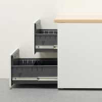上段・下段引出しは、A4サイズファイルも収納可能で奥側までスムーズに開閉でき取外しに容易なフルオープンスライドレールを採用しています。