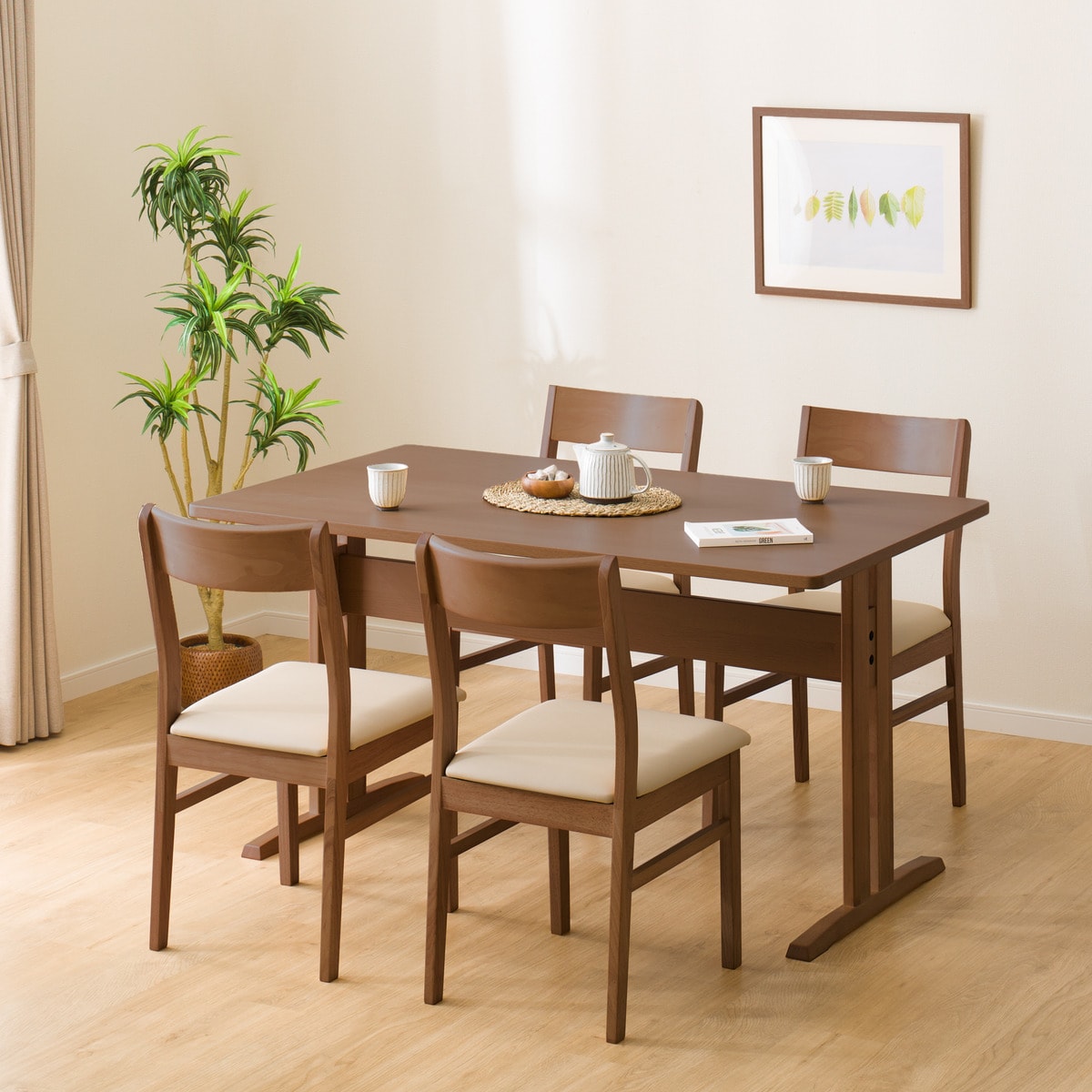 主な素材:【テーブル】天板:繊維板 【チェア】フレーム:天然木(ラバーウッド)張地:合成皮革
