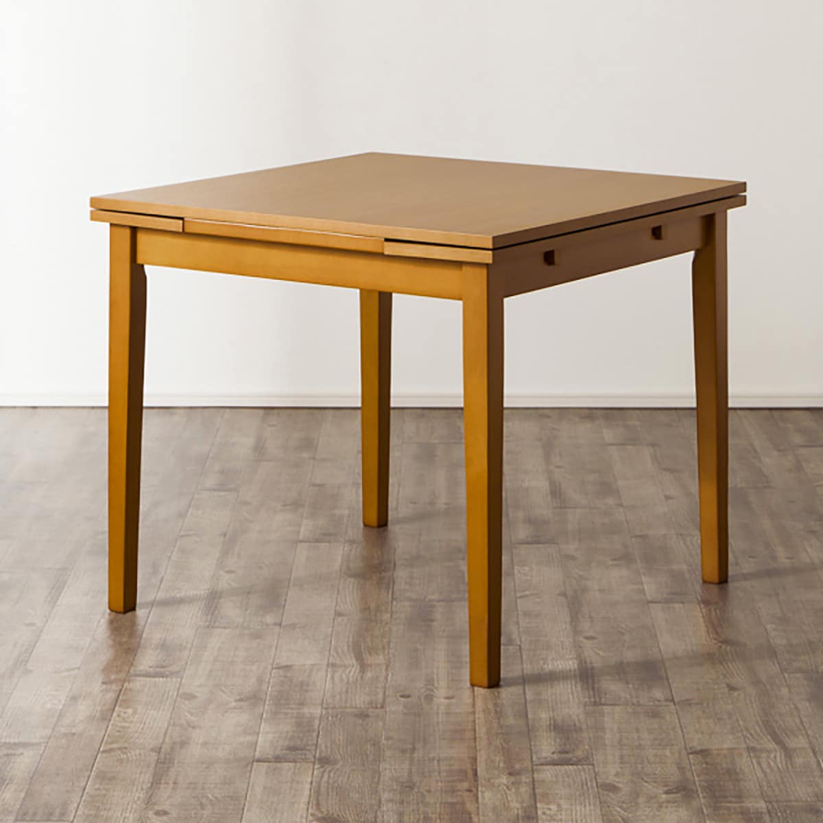 天板を80cm、100cm、120cmの3段階にサイズ変更できるので、普段は1〜2人用に便利なコンパクトサイズでも、来客時にはワイドに使えるのが便利。