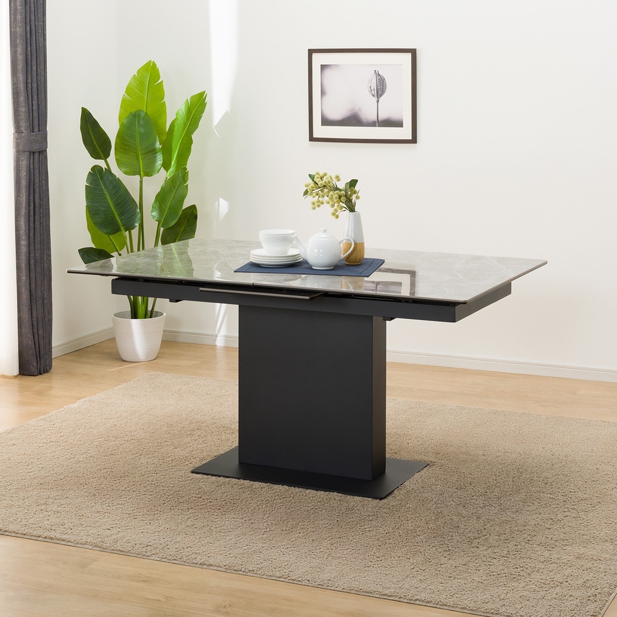 天板に美しく強いセラミック素材を使用した伸縮式ダイニングテーブルです。