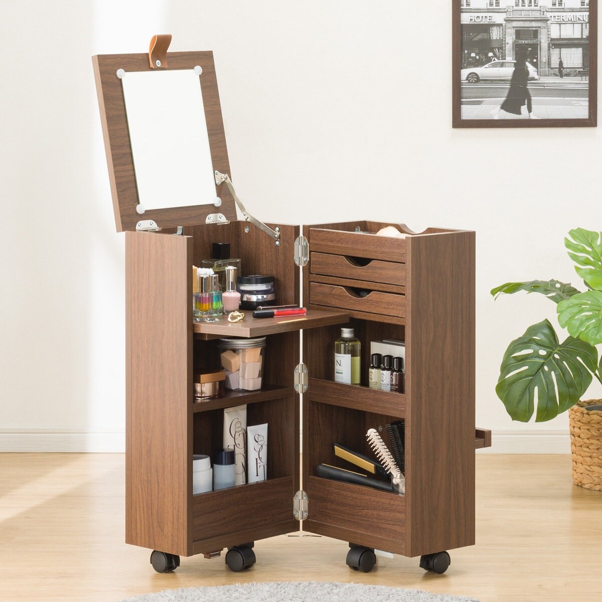 メイク小物やアクセサリーをまとめて収納でき、ドレッサーにもなるコンパクトワゴン。