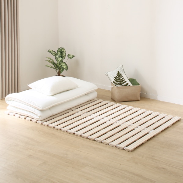 ●スノコ単独でベッドになります。(裏面に滑り止め床保護材が付いています)マットレスや敷きふとんを敷いてお使いください。