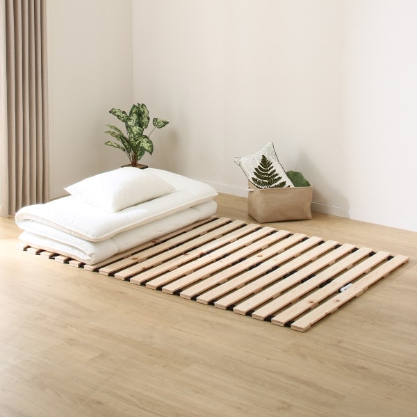 ●スノコ単独でベッドになります。(裏面に滑り止め床保護材が付いています。)マットレスや敷きふとんを敷いてお使いください。