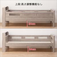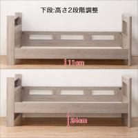 ●空間ゆとり設計(下段2段階調節可):下段サイドレールを下設定に組み立てると、下段ベッド部空間が広くなり圧迫感が軽減されます。