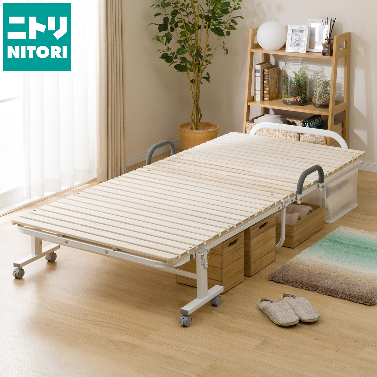 必要な時にサッと広げて使える折りたたみベッドは、限られたスペースを有効に使える便利さが魅力です。急な来客用としても使えます。