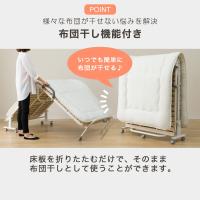床板を折りたたむだけでそのまま布団干しとして使うことができます。花粉や梅雨の時期や、ベランダが無く外干しできない場合でも室内でいつでも簡単に埃や湿気を逃がせます。
