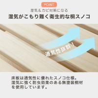 床板は通気性に優れたスノコ仕様。常に新鮮な空気が循環し、睡眠中の汗による溜まりやすい湿気も解消できるため、カビ対策に効果的です。湿気に強く防虫効果のある桐材を使用していますので、安心して長くお使い頂けます。