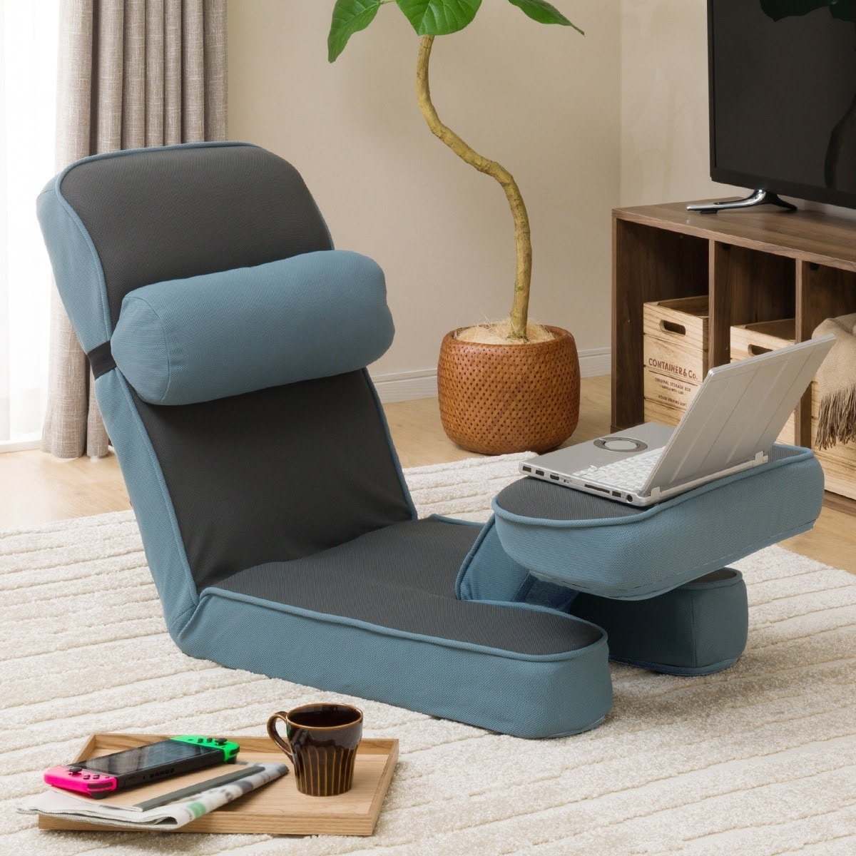テーブルは14段リクライニング調節機能つき。クッションは取り外し可能。お好みの位置に取り付けてご使用ください。