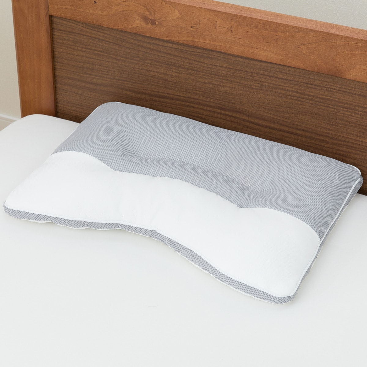 肩口にフィットする曲線形状。首筋をしっかり支える低めの枕。