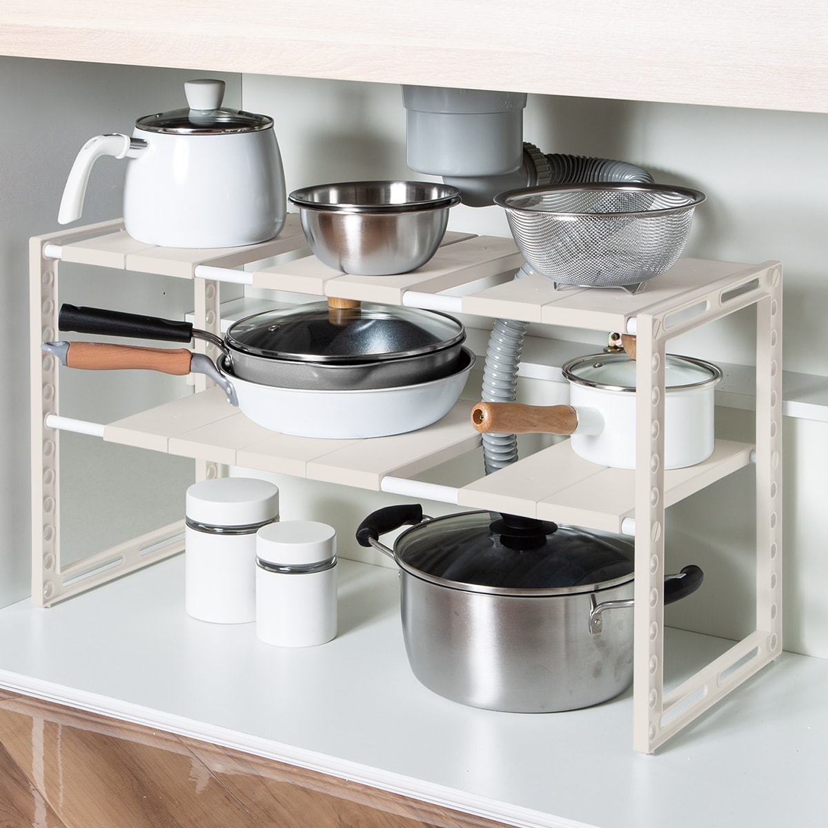●幅と高さが調節できて、シンク下が無駄なくスッキリ収納