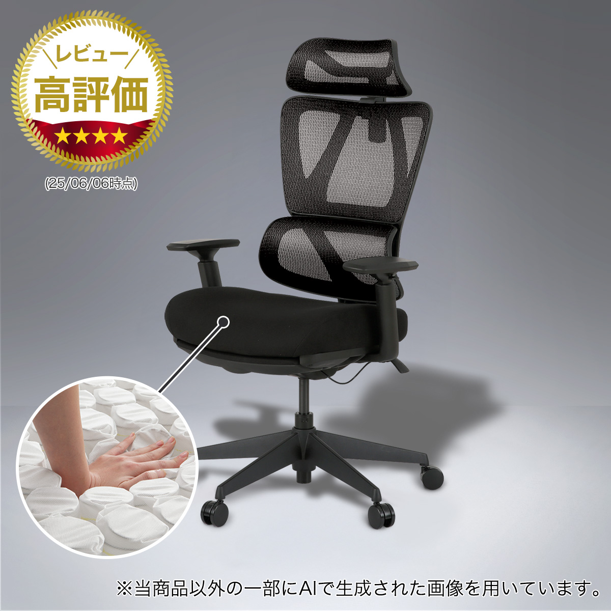 座面に体圧分散性に優れたポケットコイルを使用し、長時間座っても疲れにくいワークチェアです。