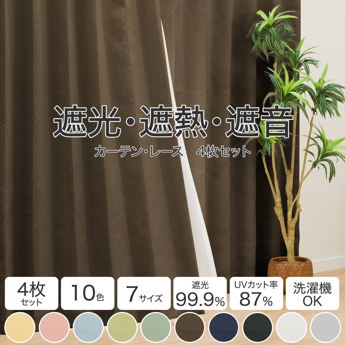 サイズ(約):【カーテン】幅100×丈110×2枚【レース】幅100×丈108×2枚
