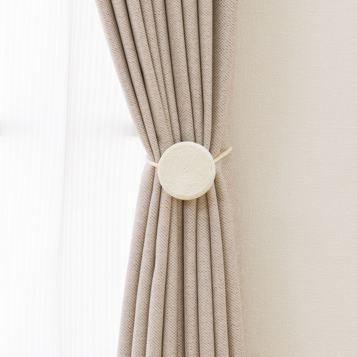 マグネットでお好みの位置にまとめられる。ふさかけがなくてもまとめられる。