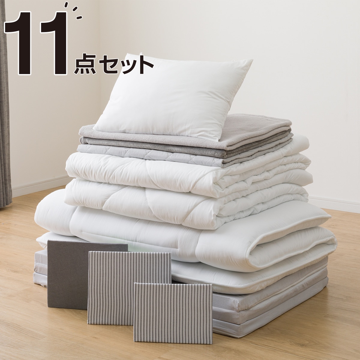 夏用寝具には肌掛ふとん1枚、冬の寒い時期には、合掛ふとんとの2枚合わせであたたかくご使用いただけます。