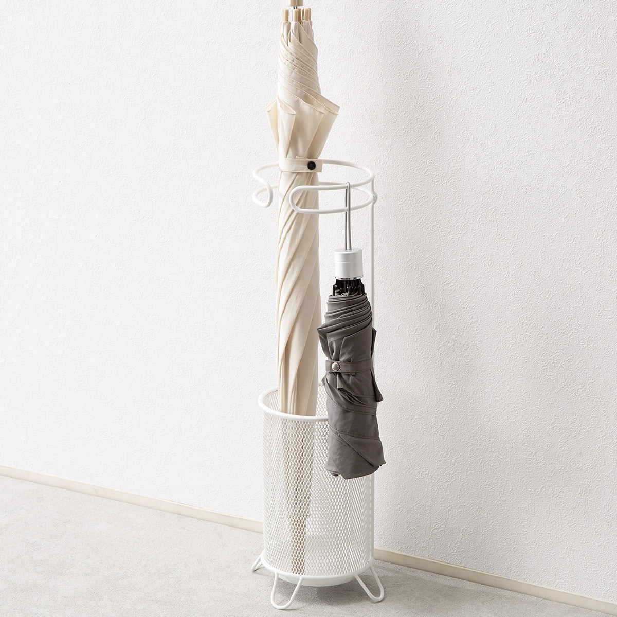 ●乾いている傘は外側に出して掛けて収納分けができる