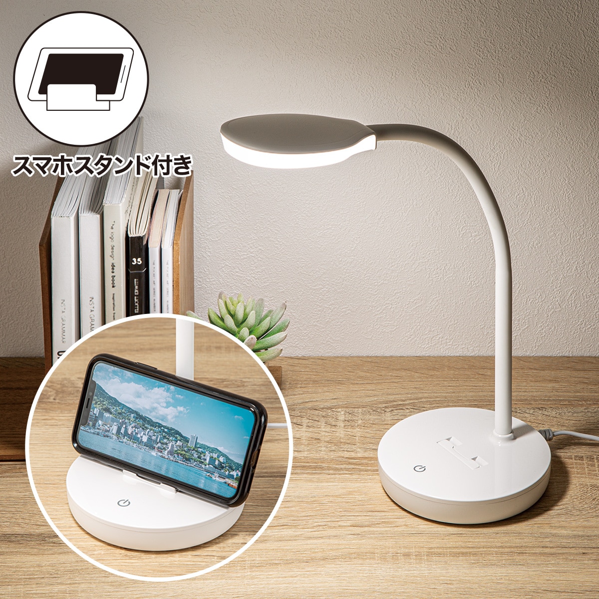 ●タブレットも置けるスマホスタンド付き