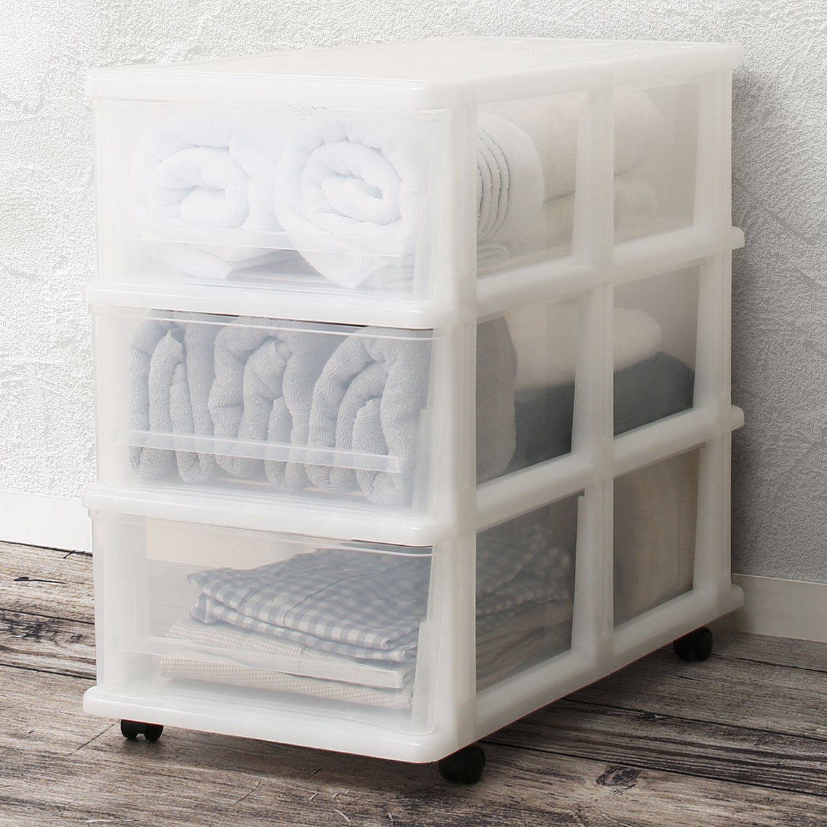 ●キャスター付きで出し入れラクラク、使いやすい3段タイプ