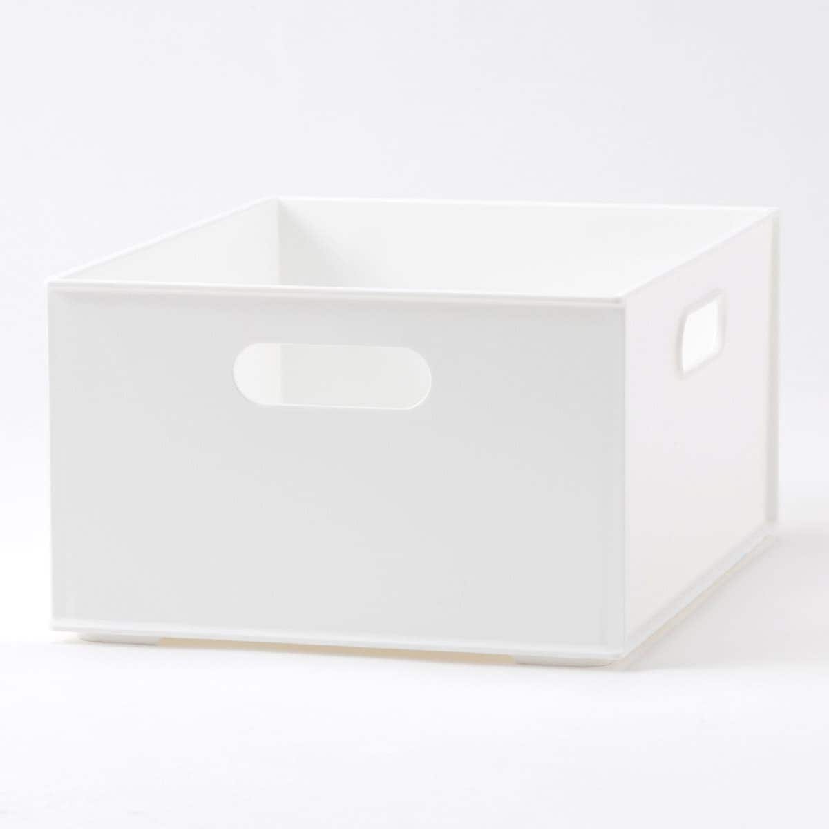 角の丸みがなくなり、正面持ち手リブがなくなったことで、住空間に溶け込む直線的なかたちとなり、サイズ違いで組み合わせても、ピタッとそろいます。