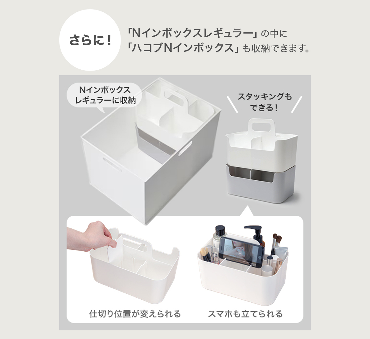 ※旧シリーズ「インボックス」とは同サイズで互換性があり、本体、フタともに積み重ねできます。