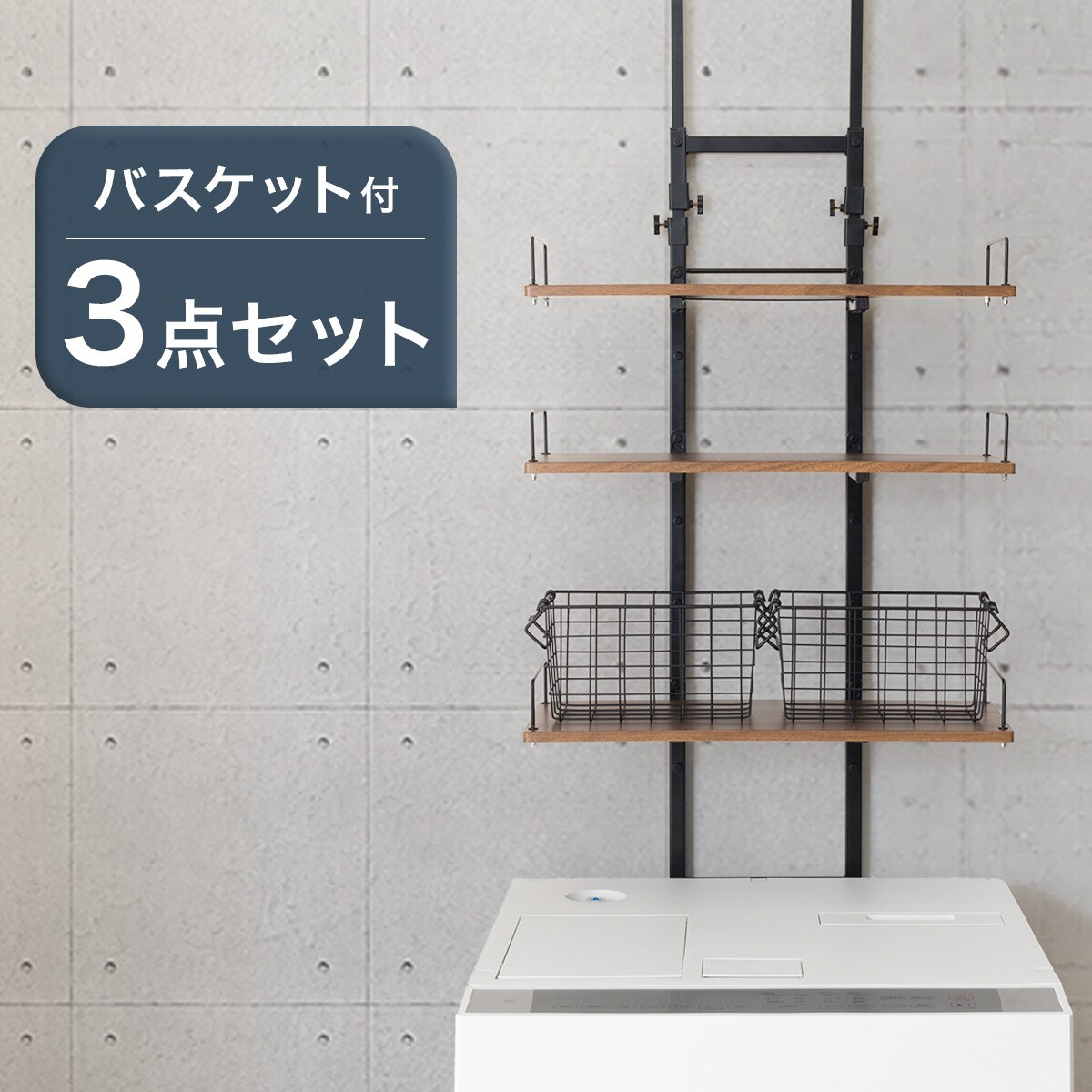 【8501239 わずかなすき間を収納に つっぱり洗濯機ラック(ミドルブラウン BH07)】×1点【お客様組立品】
