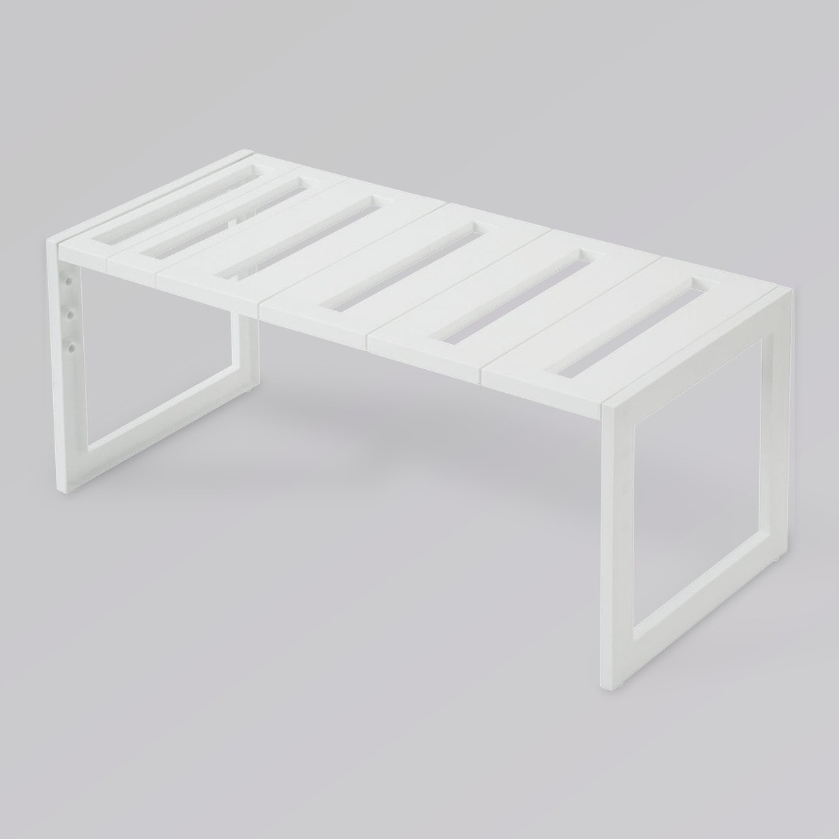 ・棚の伸縮幅は46〜75cmです。棚の幅を調節する際は、パイプに表示されている赤い線以上広げないでください。