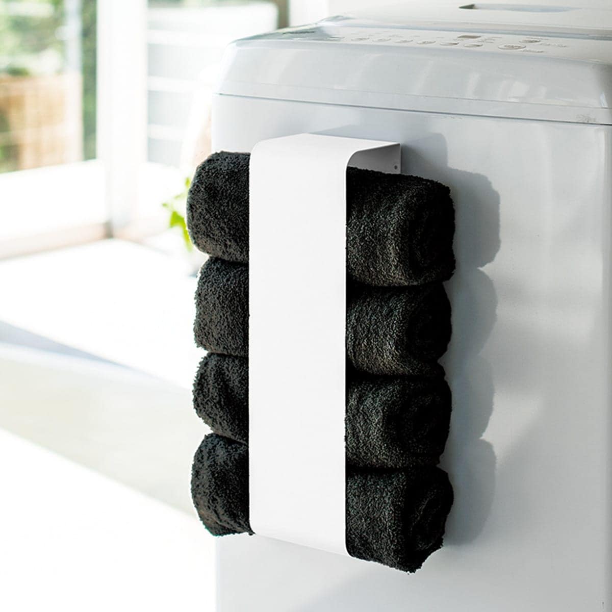 ●バスタオルを丸めて洗濯機や壁面にすっきり収納