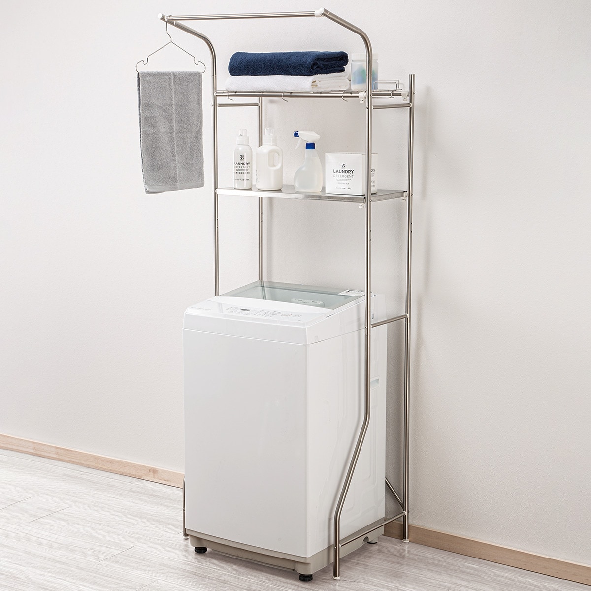●ワイヤーとプレートの2種類の棚板でタオルや洗濯用品を置けるから、ランドリールームの整理に最適