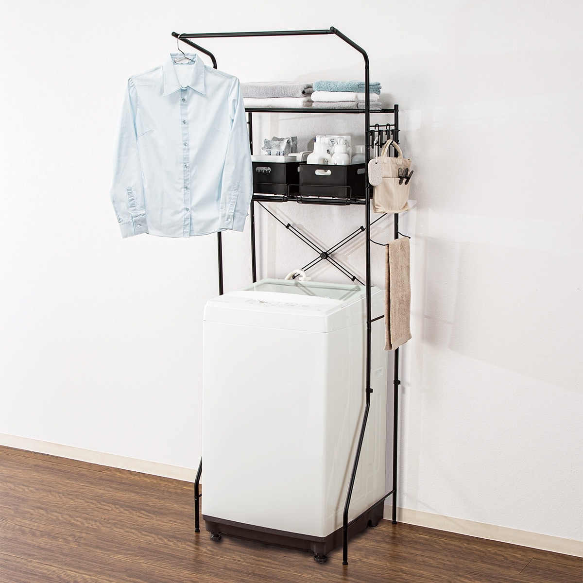 ●衣類も掛けられてサイドも有効に使える洗濯機ラック